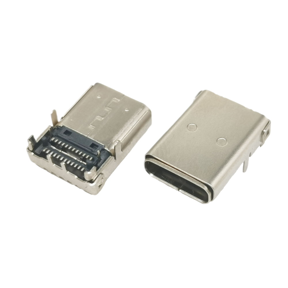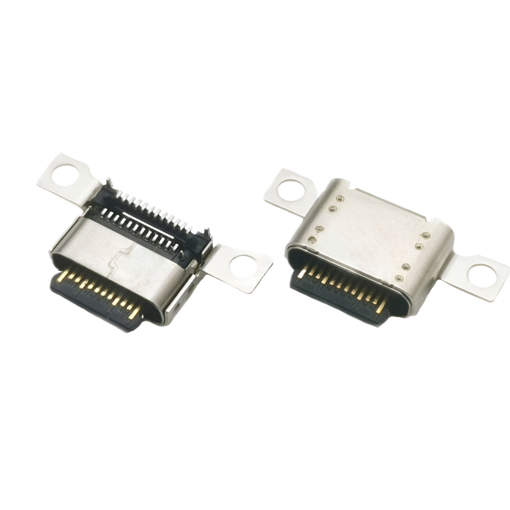 TYPE C 單排24P母座 沉板式免焊型連接器 帶雙耳螺絲孔